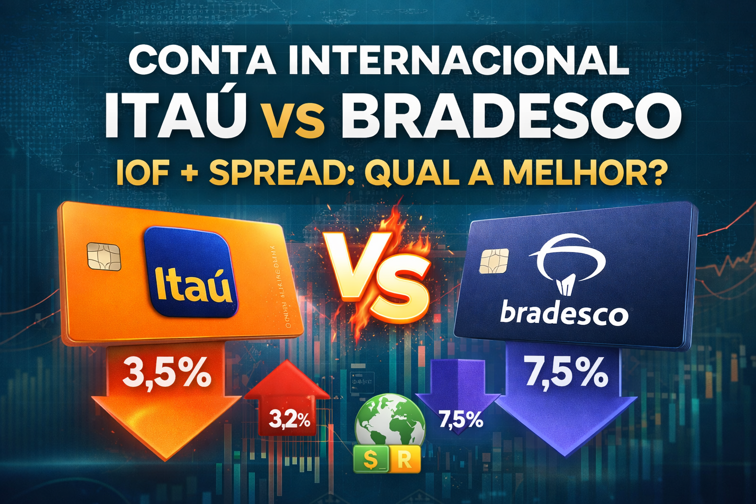 Conta internacional Itaú vs Bradesco: comparação real de IOF e spread (2026)